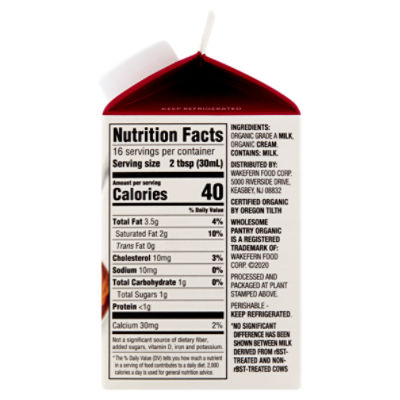 Half And Half Nutritional Information Pint Five Acre Farms